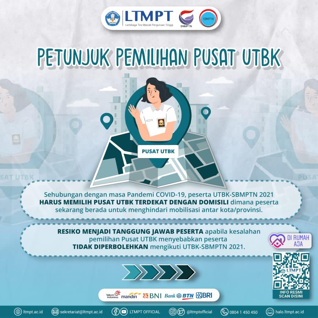 - Pada jadwal UTBK 2025 Sesi Siang pada hari Senin s.d. Kamis serta Sabtu dan Minggu, diadakan PENYESUAIAN WAKTU pada daerah-daerah yang termasuk Waktu Indonesia Bagian Barat (WIB) di wilayah Sumatra selain Lampung. Penyesuaian waktu tersebut adalah PEMUNDURAN waktu dimulainya UTBK, yang semula dimulai pukul 12.30 sampai dengan 16.15 WIB MENJADI pukul 13.00 sampai dengan 16.45 WIB.